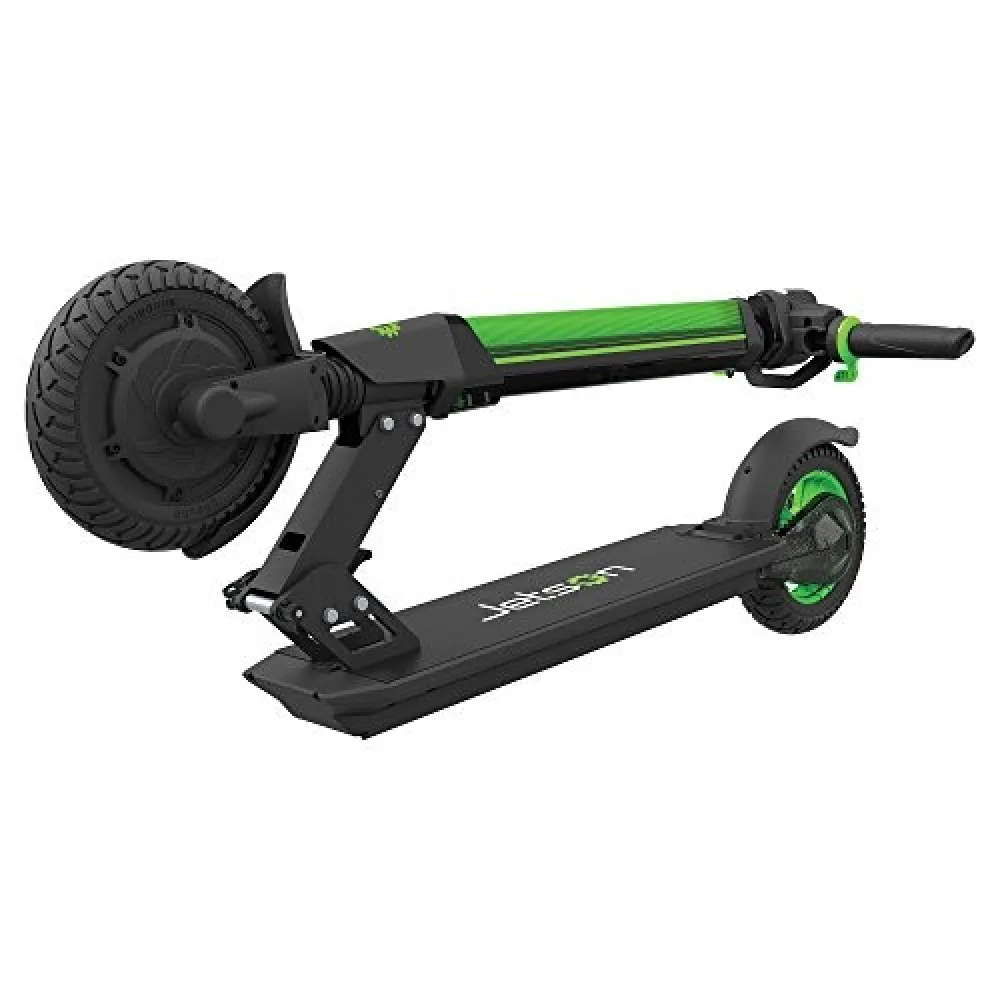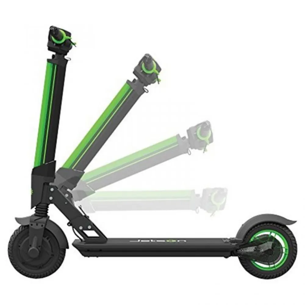 Складная конструкция позволяет транспортировать самокат Jetson L8, и хранить его в зимнее время в сложенном состоянии он занимает очень мало места. Агрегат имеет платформу с нескользким покрытием. Колеса диаметром 8 дюймов, с эластичной резиной создающей хорошую сцепку с дорожным покрытием. Тормозная система на переднем и заднем колесах позволяет вовремя реагировать на появление препятствий на дороге. Предусмотрена стояночная подножка. На рулевой стойке установлен светодиодный элемент, позволяющий быть заметным в темное время.