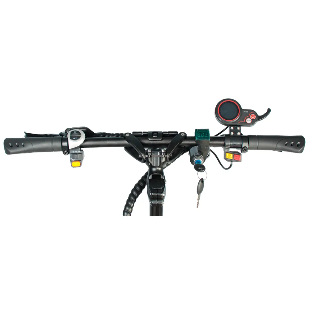 Электросамокат YOKAMURA RX1 модель с отличными характеристиками. Такой транспорт отлично подойдет для любителей быстрой езды, максимальная скорость движения 50 км/ч. Агрегат имеет складную конструкцию, руль складывается, рулевая стойка прижимается к деке. Таким образом его габариты уменьшаются в несколько раз. При транспортировке или хранении очень удобно. Рама достаточно прочная, выдерживает нагрузку 120 кг, при весе самого агрегата 26 кг. Пользователь может чувствовать себя уверено даже на больших скоростях.