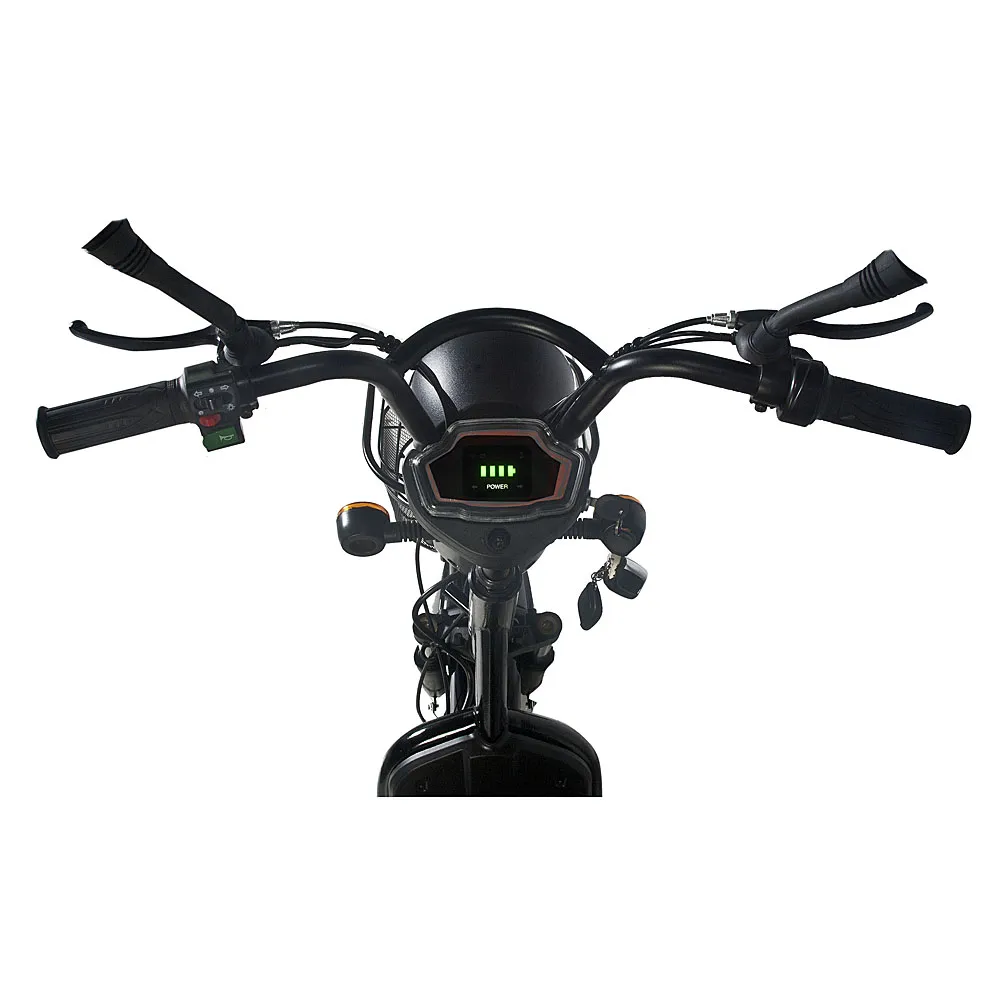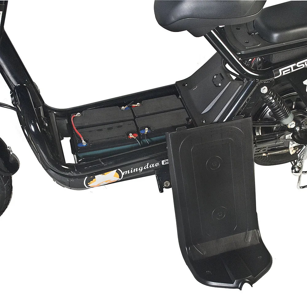 Удобная замена общественному транспорту и личному автомобилю – электроскутер GM-60 от компании Jetson. Сочетая в себе современный дизайн, динамику и комфорт, этот скутер способен проехать до 80 километров без подзарядки благодаря своему ёмкому свинцовому аккумулятору – целых 20 Ач. Батарею можно легко снять и заряжать там, где вам удобно. 450-Ваттный электромотор способен разогнать скутер до 50 км/ч даже при наибольшей возможной нагрузке – 180 килограмм. Мягкое, широкое и прочное сидение из эко-кожи с прямой посадкой делает самые долгие поездки на электроскутере приятными как для водителя, так и для пассажира. Тормоза скутера – барабанного типа и спереди, и сзади – срабатывают эффективно и без лишних рывков. Мощная LED-фара и яркие габаритные огни делают передвижение на скутере ночью безопасным. Управление движением, фарами и скоростными передачами осуществляется с помощью кнопок и ручек на руле. Высокопрофильные, 16-дюймовые колёса спокойно проезжают через любые препятствия на городских дорогах. В комплекте Jetson GM-60 идут корзина для перевозки вещей, пассажирское седло и сигнализация.