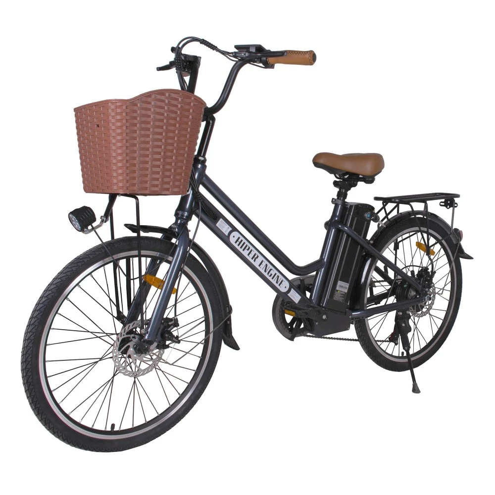 Чтобы ваше передвижение по городу стало гораздо комфортнее и быстрее, вам стоит приобрести в нашем интернет-магазине электровелосипед HIPER HE-B67. На нем вы сможете перемещаться не только при помощи электрического мотора, но и задействуя механические усилия для вращения педалей. Так вы сможете насладиться быстрой ездой, сочетая ее с физической активностью. Основа устройства состоит из алюминиевой рамы, благодаря чему оно выдерживает нагрузки до 130 килограмм. Для езды активируется двигатель на 500W, который способен поддерживать до 7 режимов езды, развивая максимальную скорость в 25 км/ч. Система тормозов на электровелосипеде HIPER HE-B67 расположена на обоих колесах.