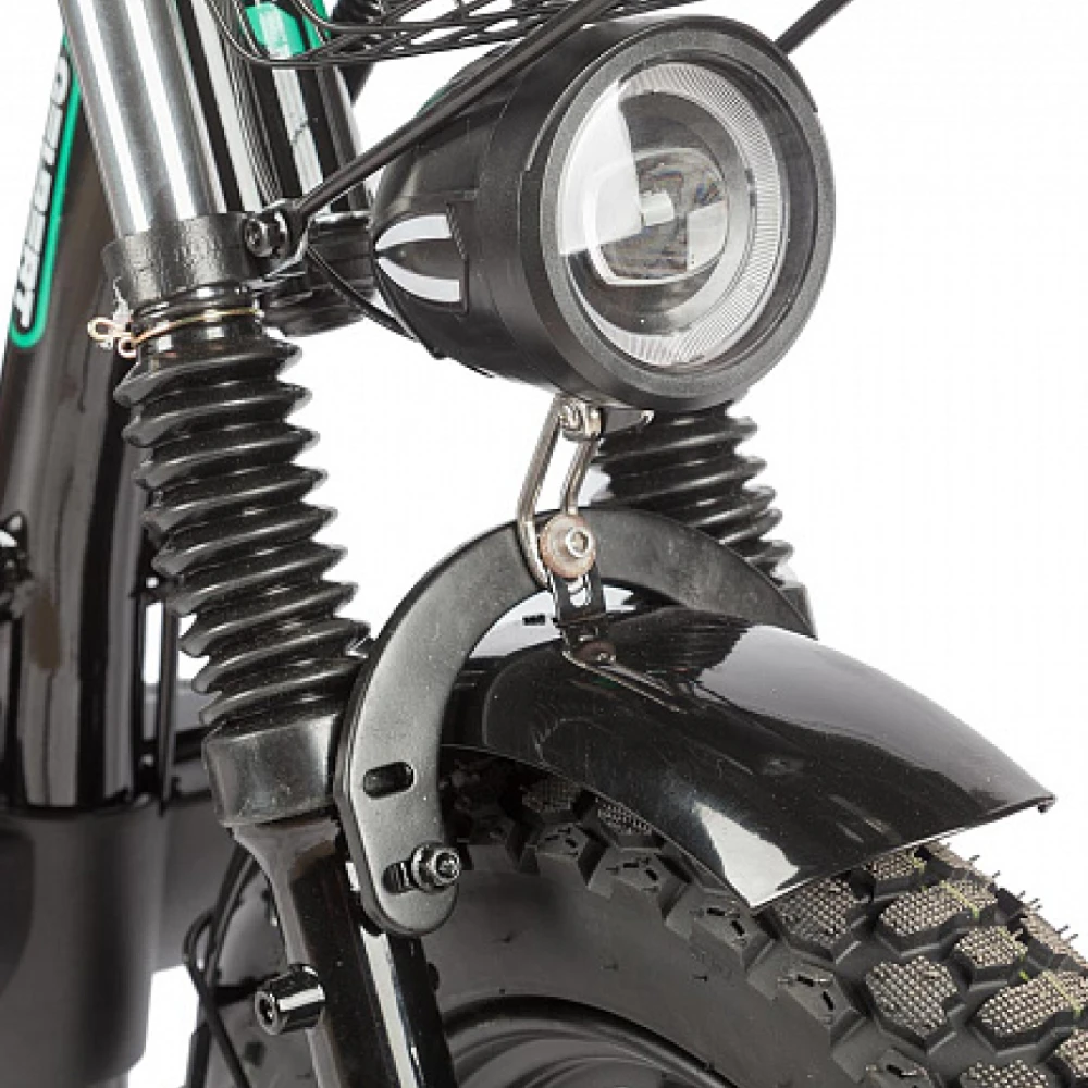 Электровелосипед Eltreco Gelbert Condor 2 – это современное решение для тех, кто ищет сочетание надежности, экономичности и передовых технологий в одном устройстве. Сконструированный на основе прочной стальной рамы, он гарантирует долговечность и устойчивость даже при максимальной нагрузке до 140 кг.Устройство оснащено двухподвесной системой, которая эффективно поглощает дорожные неровности, обеспечивая комфортное перемещение по разнообразным маршрутам. Диаметр 16-дюймовых колес и передовые дисковые гидравлические тормоза способствуют надежному сцеплению с дорогой и безопасному торможению в любых условиях.Сердцем велосипеда является задний двигатель мощностью 240 W, который, несмотря на компактные размеры, позволяет развивать скорость до км/ч, делая поездки динамичными и эффективными. При этом заявленный пробег до 100 км на одном заряде позволяет использовать электровелосипед для длительных поездок без частой подзарядки.Эффективная система питания реализована с помощью аккумулятора типа Li-ion, работающего по параметрам 60V и 30Ah, что обеспечивает стабильное энергоснабжение и время полной зарядки всего за 5–7 часов. Дополнительное оснащение включает переднюю фару и задние стоп-огни для улучшения видимости в условиях плохой освещенности, а также систему старт-стоп, способствующую экономии заряда аккумулятора.Gelbert Condor 2 представляет собой гармоничное сочетание стиля, производительности и практичности – идеальный выбор для тех, кто ценит комфорт, надежность и современные технологии в повседневном передвижении.