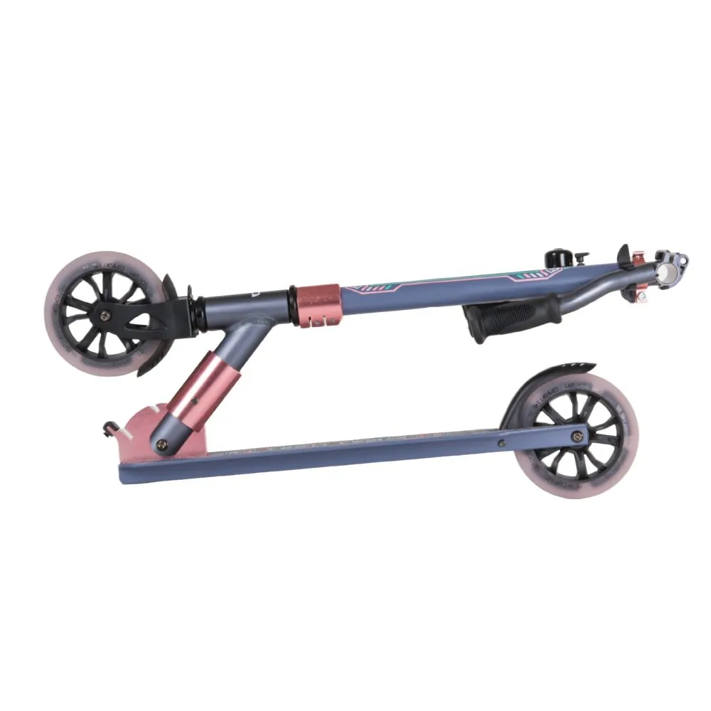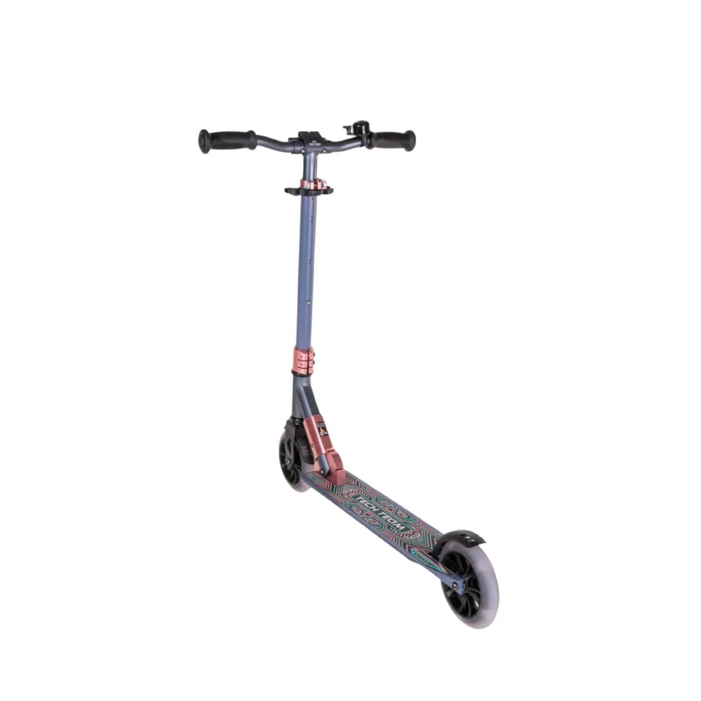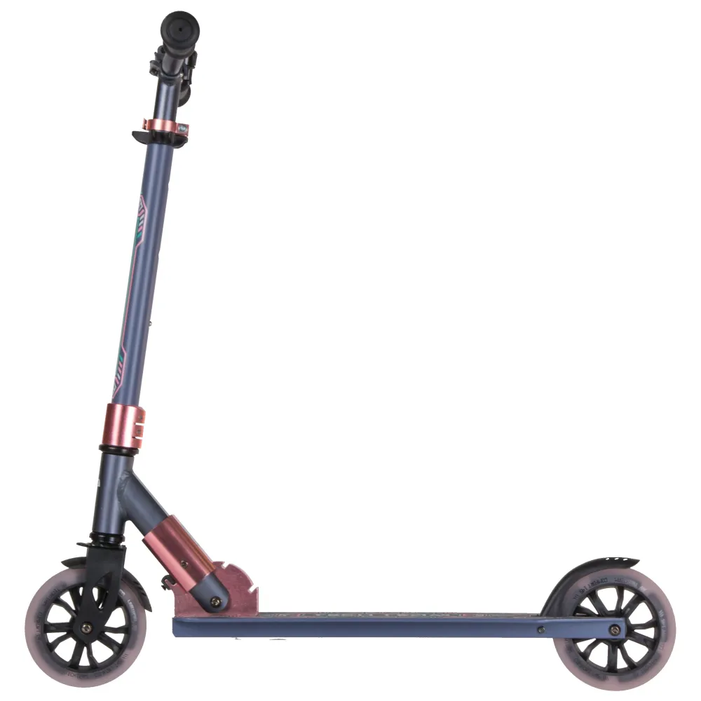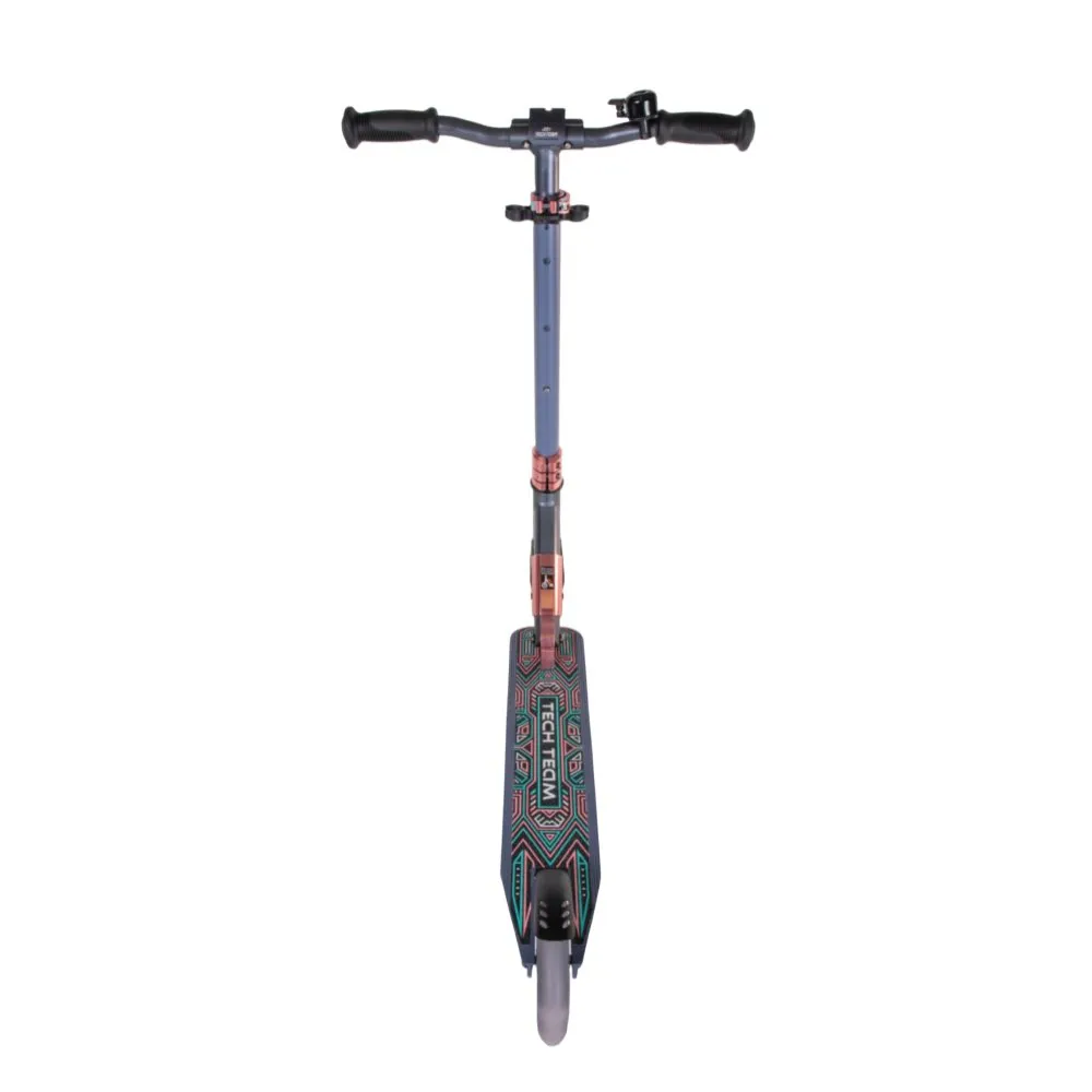 Визуально техника выглядит красочно и заметно, вызывает зависть у других райдеров. При массе 3,65 кг модель может самостоятельно транспортироваться/переноситься райдером. Самокат изготовлен из облегченного ударопрочного материала, технически оснащен по максимуму. Эксплуатация техники рассчитана на городскую местность и парковую зону. Рулевая часть шириной 475 мм регулируется в 3-х положениях - 720-780-860-940 мм. Грипсы выглядят современно, оформлены по-взрослому, повторяют анатомические части тела, не скользят.